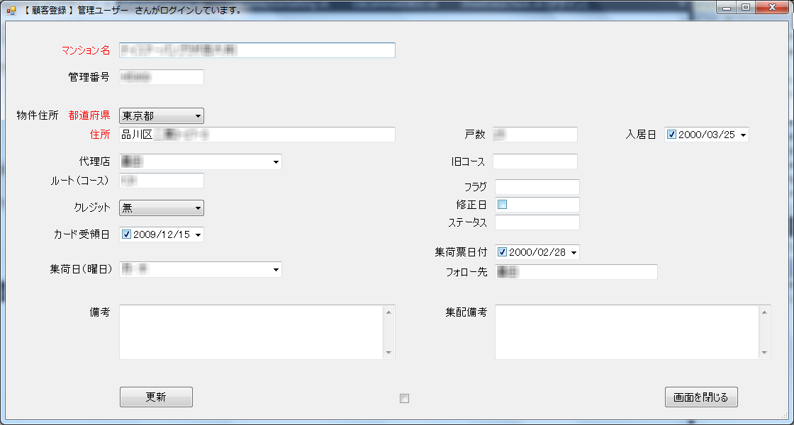 • 顧客であるマンションの情報を顧客登録画面に登録。