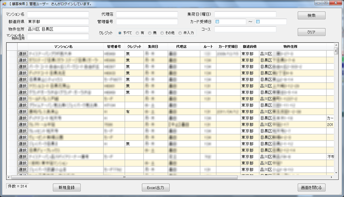 都内クリーニング関連企業様の顧客(マンション)名簿およびその検索に特化したツールを開発。